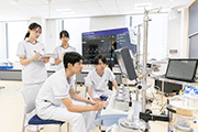 人工呼吸器、人工心肺装置、血液浄化装置に代表される生命維持管理装置の操作、点検保守を行い、医療現場の一員として「チーム医療」を支えるのが臨床工学技士の役割です。高度化・専門化が進む医療機器に対応する工学的知識、そして人体の構造と機能や疾病への理解といった医学的知識を兼ね備えた人材が、多くの医療現場で必要とされています。臨床工学科では国家試験合格のためのサポートはもちろん、知識と実践力、チームで協働するためのコミュニケーション能力など、現場で活躍するための多様な力を高める環境を用意しています。